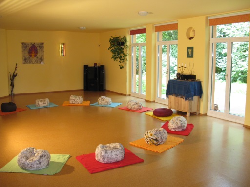 Das Seminaraus Ahom ist ein wunderschöner Ort für einen Tag Auszeit – für ein Rendezvous mit Dir selbst. Es liegt ganz ruhig und vom Yogaraum hat man direkten Blick in den Garten mit alten, hohen Bäumen (in denen sich manchmal sogar Eichhörnchen tummeln) und man sieht in den Himmel.