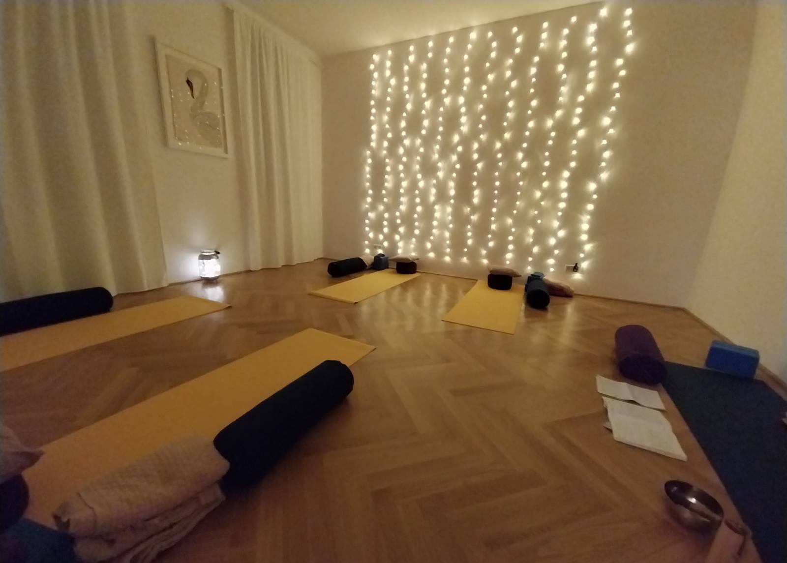 Liebevoll gestaltete, sehr ruhige Räumlichkeiten, sanftes Licht (der Raum wird ausschließlich mit Lichterketten beleuchtet) und eine Kleingruppe mit maximal fünf Frauen schaffen eine geborgene Atmosphäre zum Wohlfühlen, Loslassen und zum sanften Rückzug nach innen.